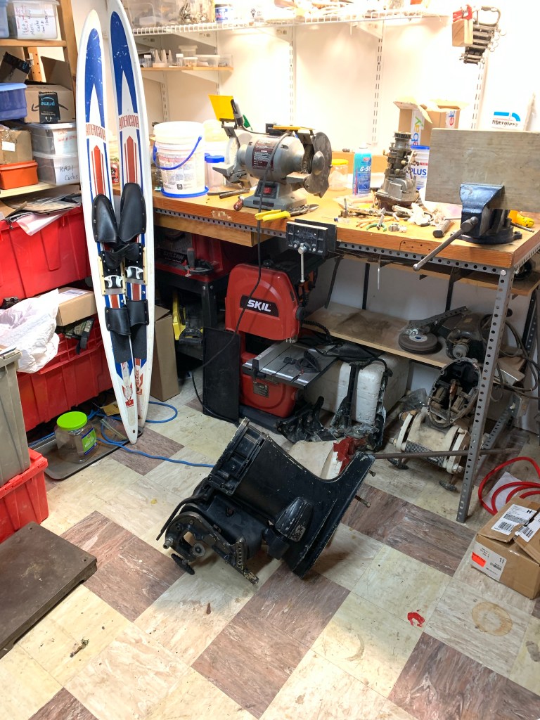 The mid section of the Magic Motor sat on the floor for a bit. I tried to attach it to a vice on the bench but it was too high to work on.