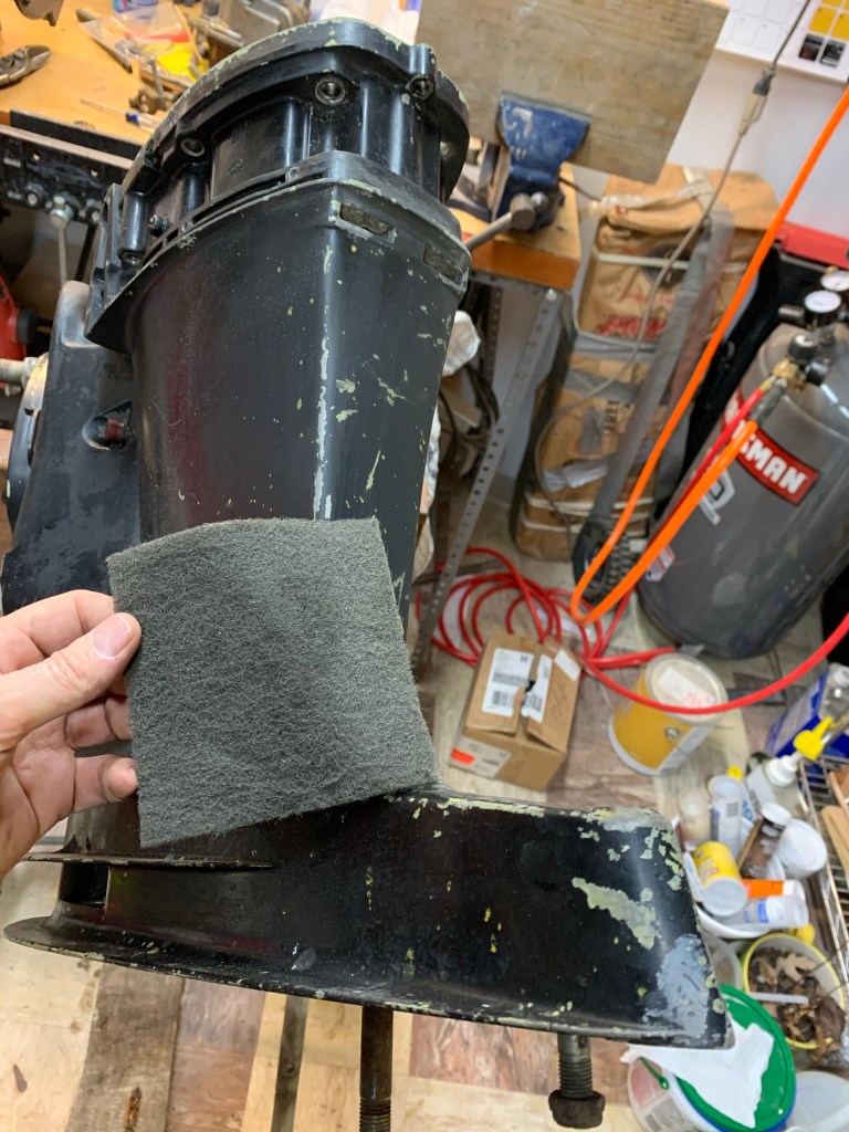 I dropped it on a motor hauler with wheels and began sanding it with scotch-brite. I’ve got a few different coarse options. I also tried some Steele wool and had to use something more aggressive. Overall it’s going to take some time. I’ll look for a warm day to take it outside and wet sand it.